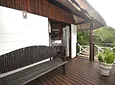 This charming double storey thatch home has 3 bedrooms, 2 bathooms, and a double volume, open plan living area. There is a huge deck, with beautiful valley views. The main bedroom has stack door windows, opening onto a small deck, with beautiful views of the river.