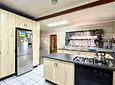 It features three generously sized bedrooms, all with built-in cupboards, and includes two full bathrooms for added convenience. The spacious dining room seamlessly connects to a well-equipped kitchen, which boasts plenty of cabinet space, a gas stove, and an electric oven.