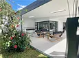 There are four well-sized and bright bedrooms, and three bathrooms: two en-suite and two share a bathroom. The spacious main bedroom boasts a walk-through dressing area with plenty BIC to the full en-suite bathroom, and sliding doors opening up onto it’s own patio and overlooking the lush garden.