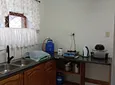 A practical kitchen, equipped with a stylish modern faucet and ample storage space.