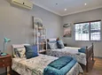 The kitchen is next to the entertainment areas and is to die for! This is one of the selling features of this house, as it is an above average in size, it boasts a counter island with gas hob (5 plate) and extractor. Ample cupboards, pantry cupboards, space for a double door fridge, two eye level ovens and the list continues, its two-tone cupboards make this kitchen stylish and modern.
